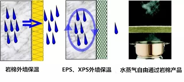 建筑物外墻是需要呼吸的,巖棉制品由于其纖維狀多孔結構特點,使其具有極好的透氣性,這是其它建筑用保溫材料無法比擬的;建筑用巖棉制品的水氣透阻率:μ≈1.3