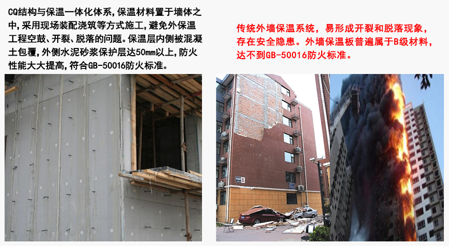 CQ免拆模板的出現打破了以往傳統建筑外墻保溫易脫落、開裂,防火保溫無法同步的問題,該模板通過實施節能結構一體化技術,實現了建筑保溫二次施工想同步施工的轉變,建筑材料防火向建筑結構防火的額轉變,建筑保溫全壽命周期向與墻體結構同壽命轉變,有效避免了外墻外保溫技術的工程質量和消防安全問題的發生,因此,全面加強建筑節能結構一體化技術的應用,讓外墻保溫方法改造升級是目前刻不容緩的!