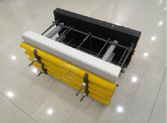 將長期性復合保溫模板與框架(框剪)結構的梁柱及剪力墻等現澆混凝土構件澆注在一起,并通過帶“羊”角螺母的連接件牢固連接, 達到了同步設計、同步施工、同步驗收的技術要求,實現了建筑保溫與結構同壽命的目的。