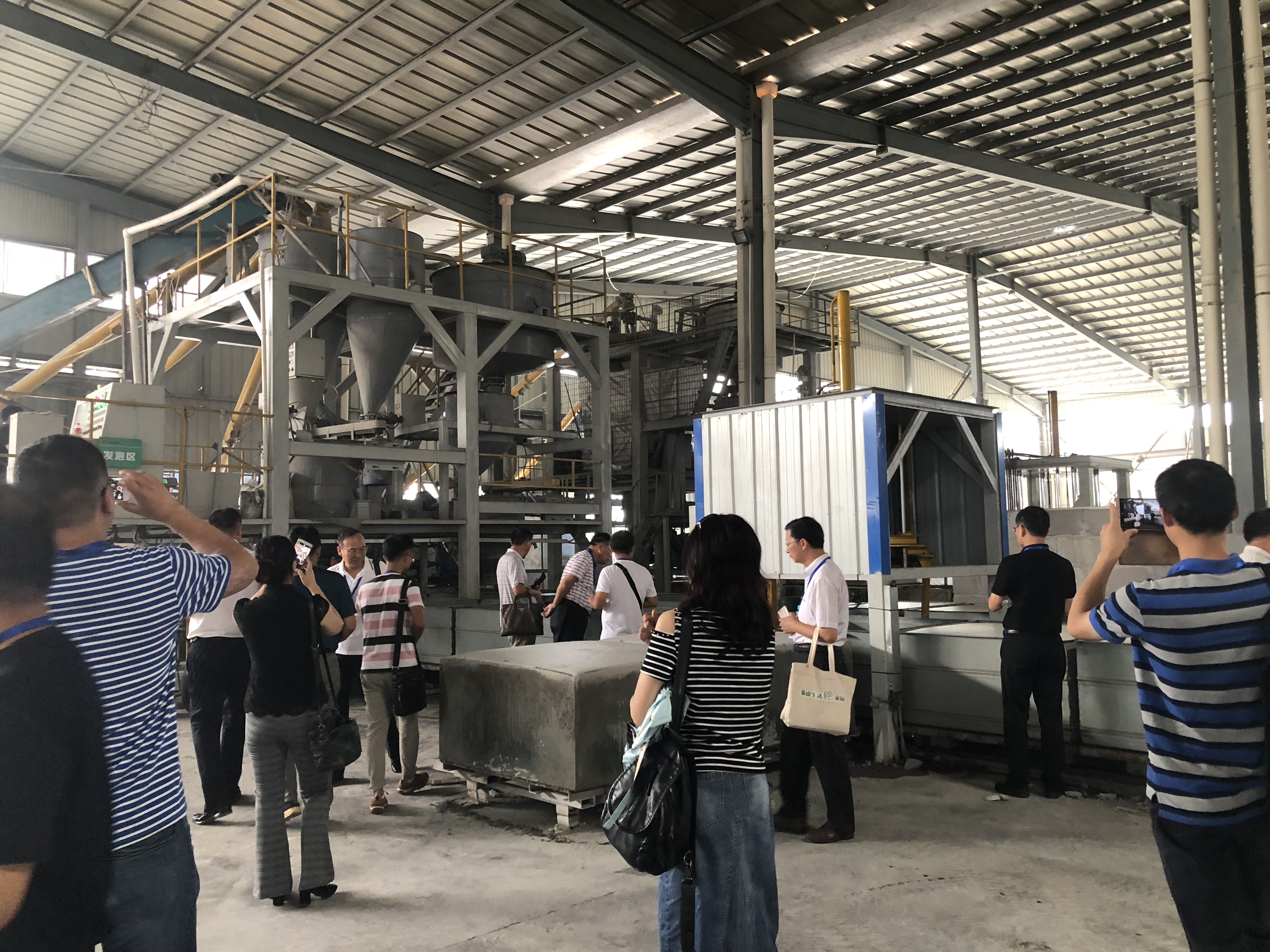 在大會的準備前期,由協辦單位朝欽科技的工作人員帶領各單位參會人員參觀了河南朝欽科技股份有限公司的生產基地,深入生產車間現場見證了泡沫混凝土自保溫砌塊、CQ免拆復合保溫板、 以及CS 石墨改性水泥基復合保溫材料等產品的生產流程。在參觀期間各方代表不但對“綠色、節能、環保”的朝欽品牌有了新的認識,也對朝欽目前的生產規模以及產品質量發出了由衷的贊賞。