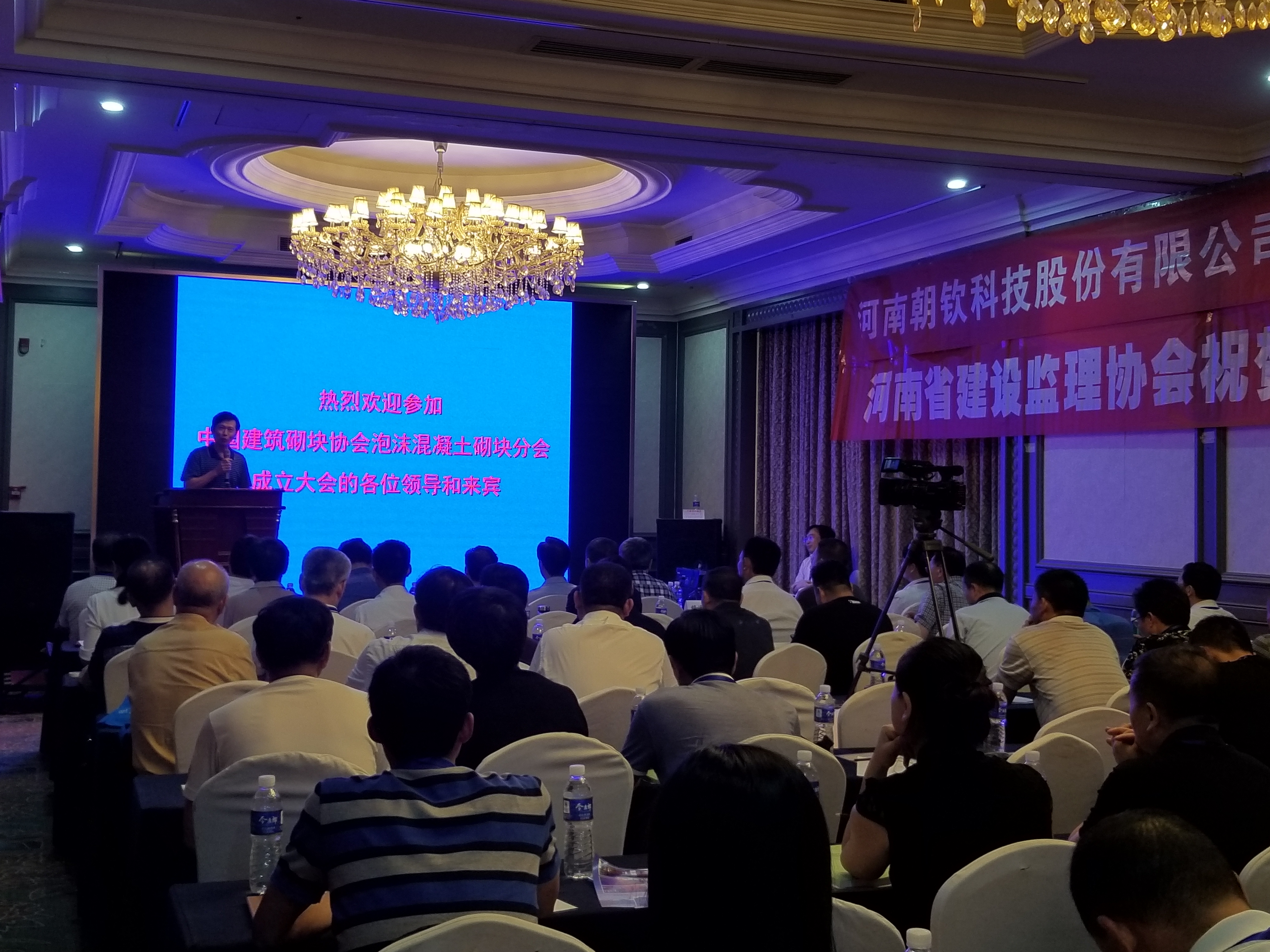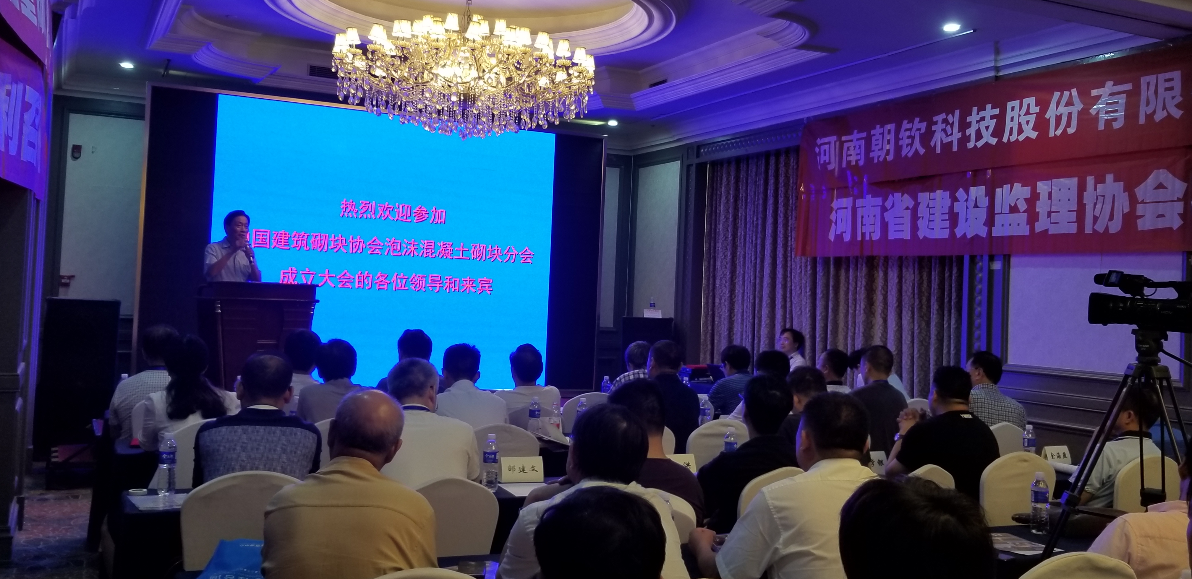 由中國建筑材料科學研究總院舉辦,河南朝欽科技有限公司協辦的“中國建筑砌塊協會泡沫混凝土砌塊分會”于2018年8月4日在鄭州順利召開。出席會議的專家學者有河南省節能減排促進會付純海副會長、河南省建設監理協會陳海勤會長、孫惠民常務副會長、河南省建設科技協會胡成海秘書長、河南省五金建材協會王志豪秘書長、喬紅凱副會長、河南省建筑科學研究院有限公司李建民總工、黃禮樂高工、河南省建筑設計研究院有限公司李洪處長以及吉林建筑大學、中國建筑技術集團等50多家企業及研究機構參加。
