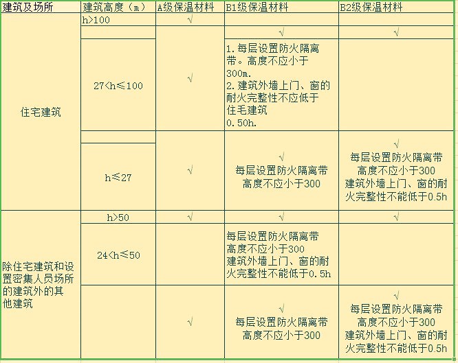 3. 設置人員密集場所的建筑,其外墻外保溫材料的燃燒性能應為A級