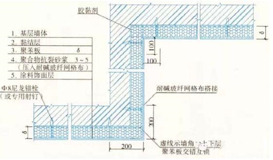 角部接縫處保溫板的排列2、EPS板、XPS板薄抹灰外墻保溫基層表面應清潔,無油污及妨礙黏結的附著物;凸起、空鼓和疏松部位,應剔除干凈并用聚合物水泥砂漿找平。根據建筑立面設計要求,在墻面彈出外門窗水平、垂直控制線及伸縮縫、裝飾縫等控制線。在外墻大角(陰陽角)及其他必要處掛垂直線,每個樓層適當位置掛水平線,控制EPS板、XPS板的垂直度和平整度。