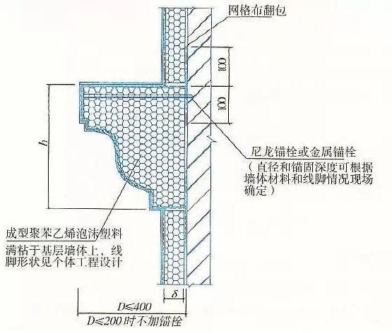 在檐口、勒腳、門窗洞口處及建筑變形縫兩側應預貼窄幅耐堿網布,作系統包邊處理。EPS板、XPS板在非標準尺寸或局部不規則時,應采用電熱絲或其他工具切割,切口必須與板面垂直。整塊墻面的邊角處應用最小尺寸大于300mm的板。